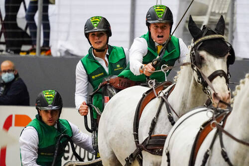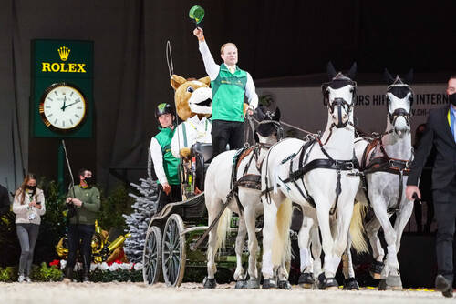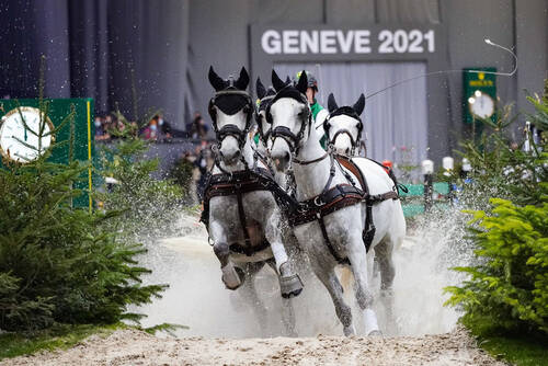 It is a picture that will never be forgotten: The teams of Boyd Exell and Bram Chardon riding side by side at an easy canter while the Australian explains to the Dutchman how to do the lap of honour, raising his voice to be heard over the cheers of the crowd. The moment is so extraordinary because Boyd Exell had reigned as the undisputed series winner for the last 12 editions of the FEI Driving World Cup™ stage in Geneva. It took the full effort and precision of Bram Chardon to dethrone the Australian, who was considered unbeatable until today.