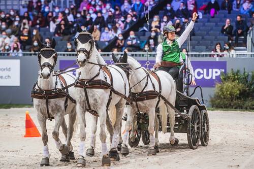 Les meneurs d'attelage ont comme d'habitude fait vibrer le public lors de la Pré-Qualificative pour la FEI Driving World Cup™. Pour leur entrée en matière cette année, les meneurs et leurs chevaux ont rivalisé d'habileté et vitesse. En fin de compte, le hollandais Bram Chardon s'est montré le meilleur, devançant Boyd Exell et Jérôme Voutaz, respectivement 2e et 3e.