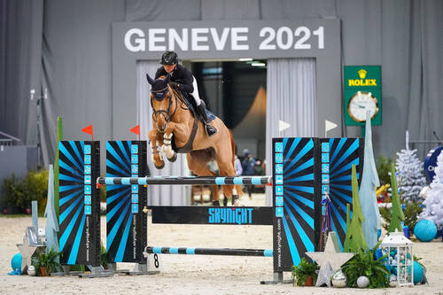 En selle sur Cartouche de pleville, Mélanie Cloarec s’est adjugé la victoire du dernier Prix Credit Suisse du CHIG 2021, Jockey Club R/N 135. Elle devance au classement Romain Jucker avec Quira II, qui prend la 2e place, et Nicolas Müller, 3e sur Decibel d'Obercourt.