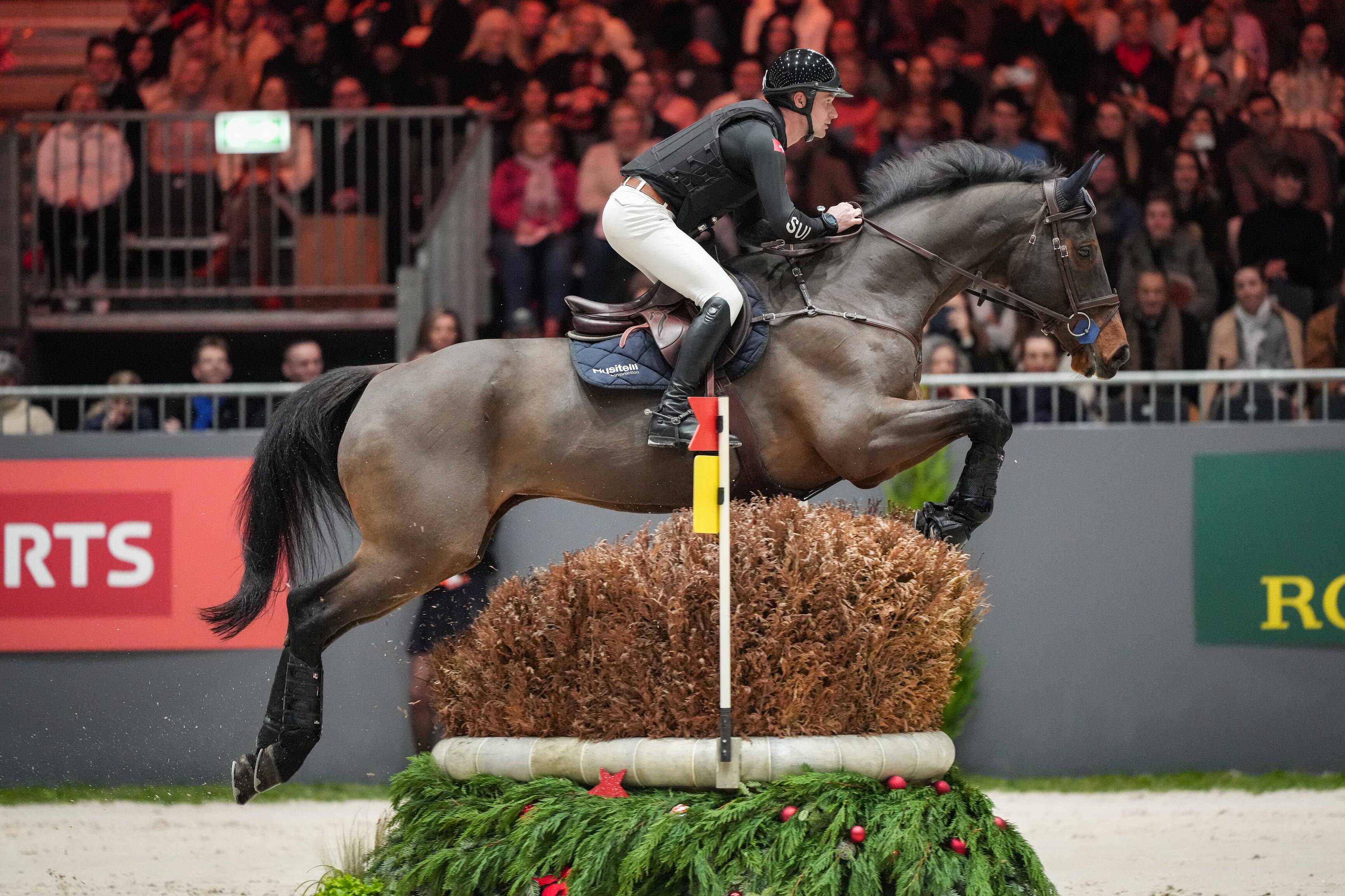Dans la douce agitation des écuries du CHI de Genève, Grandeur de Lully CH semble assoupi pendant que Noa, sa jeune groom, finit de tresser ses beaux crins noirs pour la visite vétérinaire et un léger travail sur la piste d’attractions. «Il est en mode ‘économie d’énergie’, sourit Robin Godel. C’est l’une de ses grandes qualités: il sait se préserver. C’est peut-être aussi pour ça qu’il est encore autant en forme à son âge.»